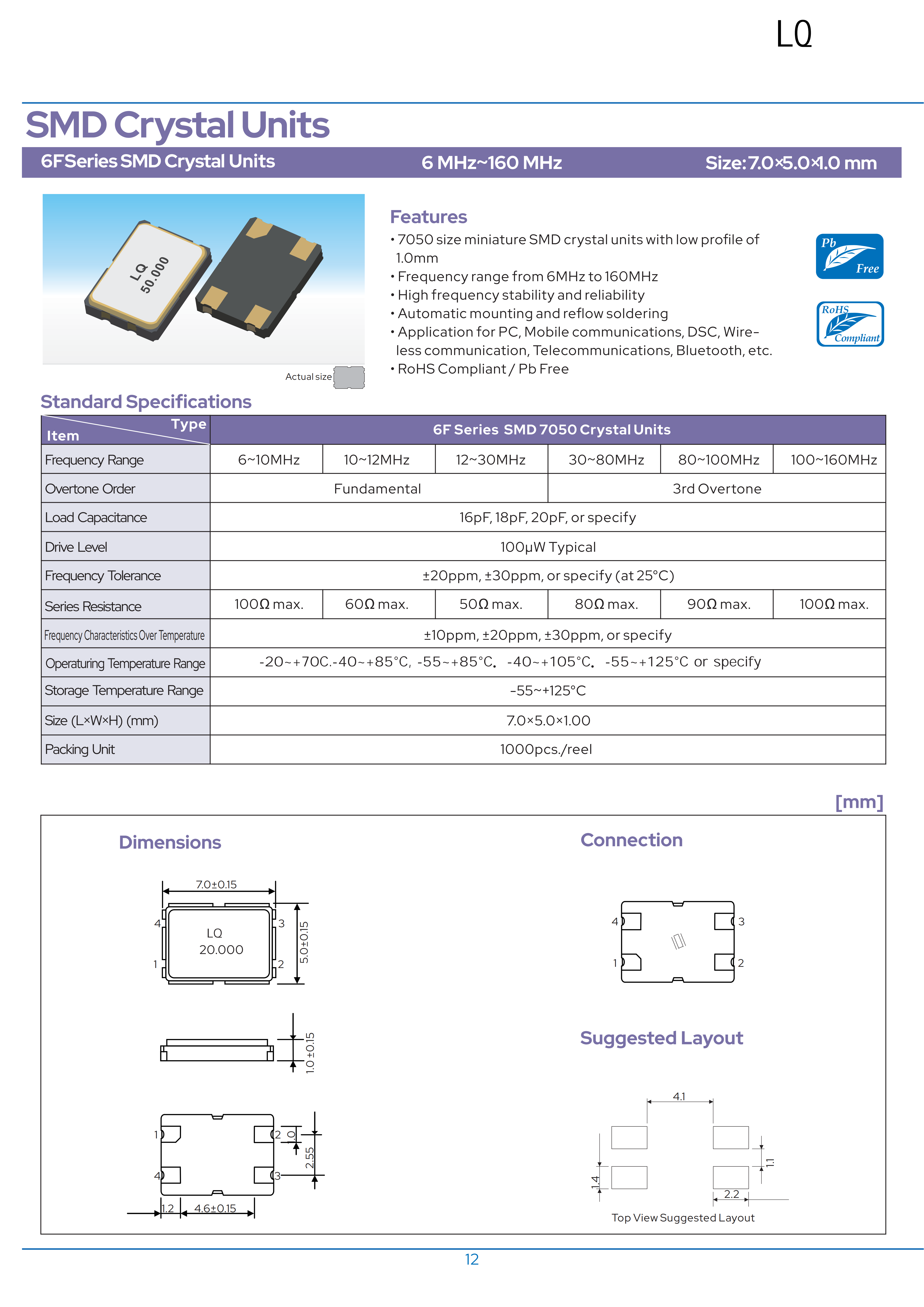 1、小尺寸,貼片金屬封裝,尺寸為:7.0×5.0×1.0mm