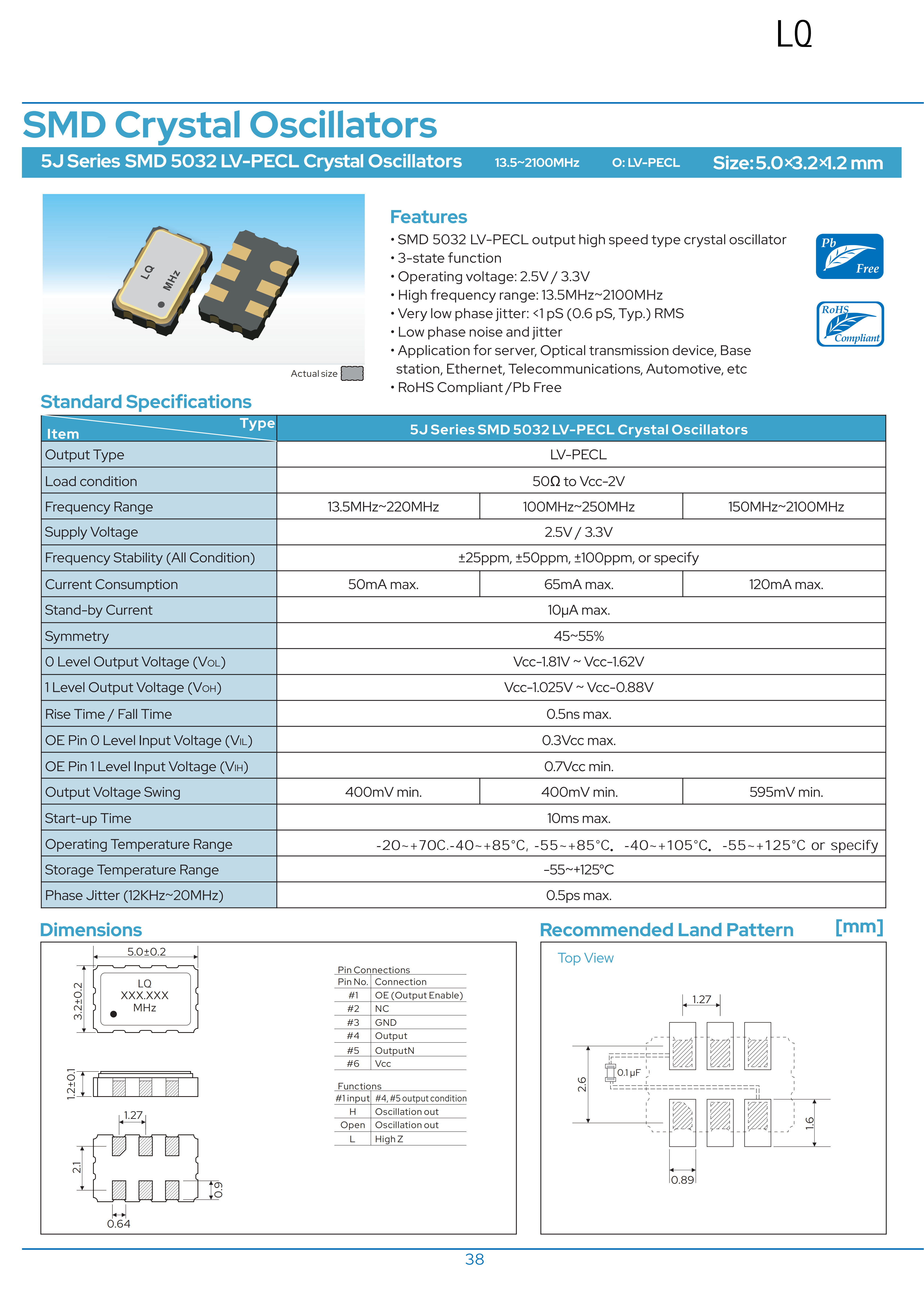 SMD5032LV-PECL高速輸出型晶體振蕩器SMD5032LV-PECL高速輸出型晶體振蕩器