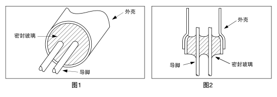 圓柱型晶振 (VT,VTC) 用玻璃密封(參閱圖1和圖2)
