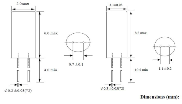 圓柱晶振為插件晶振系列,因此只適用于手工焊接,無(wú)法實(shí)現(xiàn)自動(dòng)化貼片。圓柱晶振常見尺寸為 3×8mm、2×6mm,可根據(jù)電路板空間大小選擇體積合適的圓柱晶振。如下圖所示: