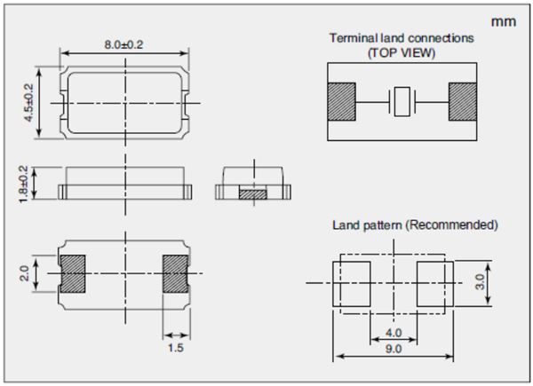 小型、薄型 (8.0 × 4.5 × 1.8mm typ.)。