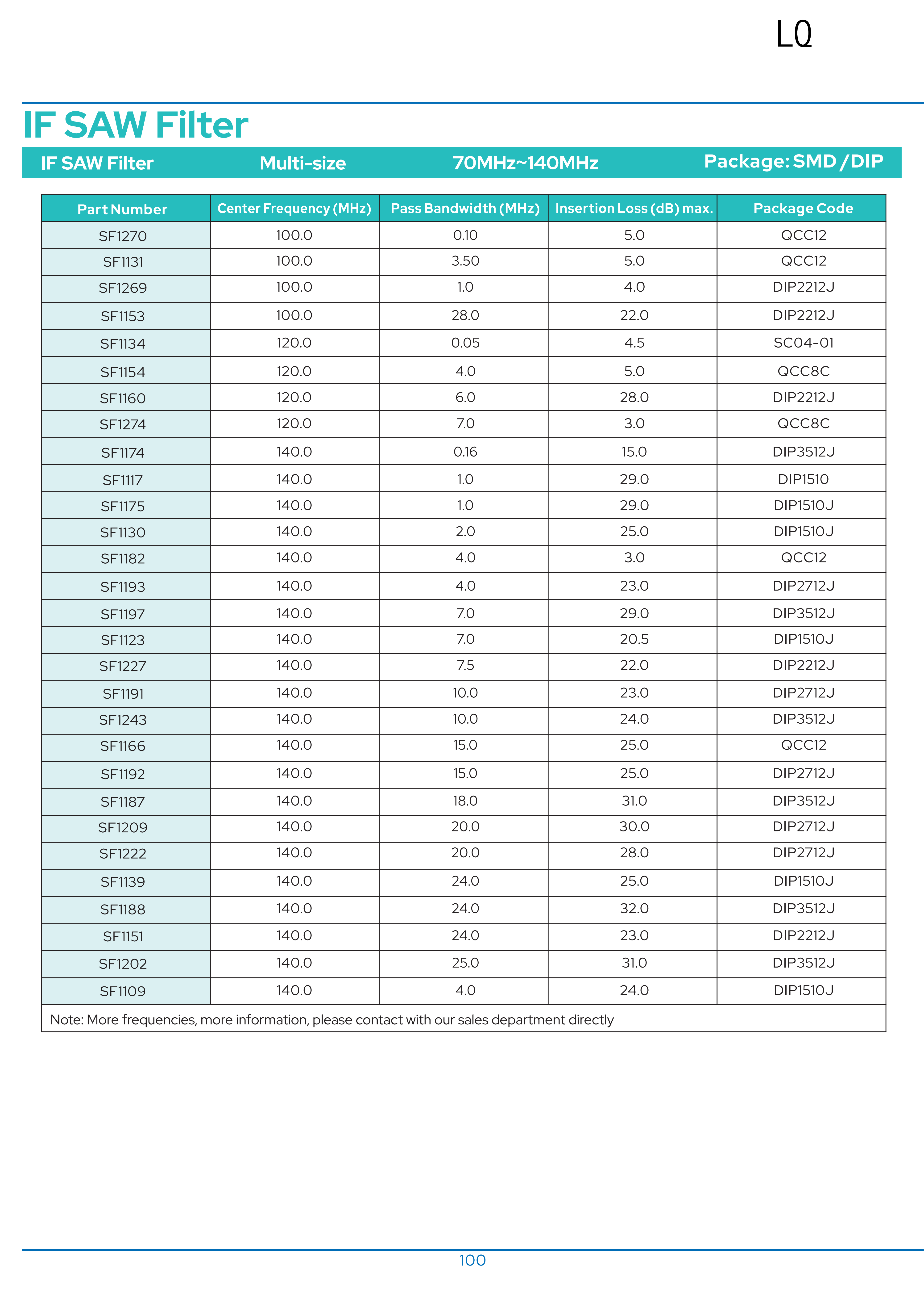 1. IF聲表面波濾波器(中頻聲表面波濾波器)