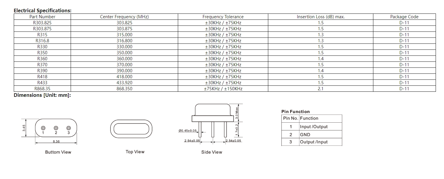 2. DIP金屬外殼封裝尺寸為0.36×3.45×3.0mm