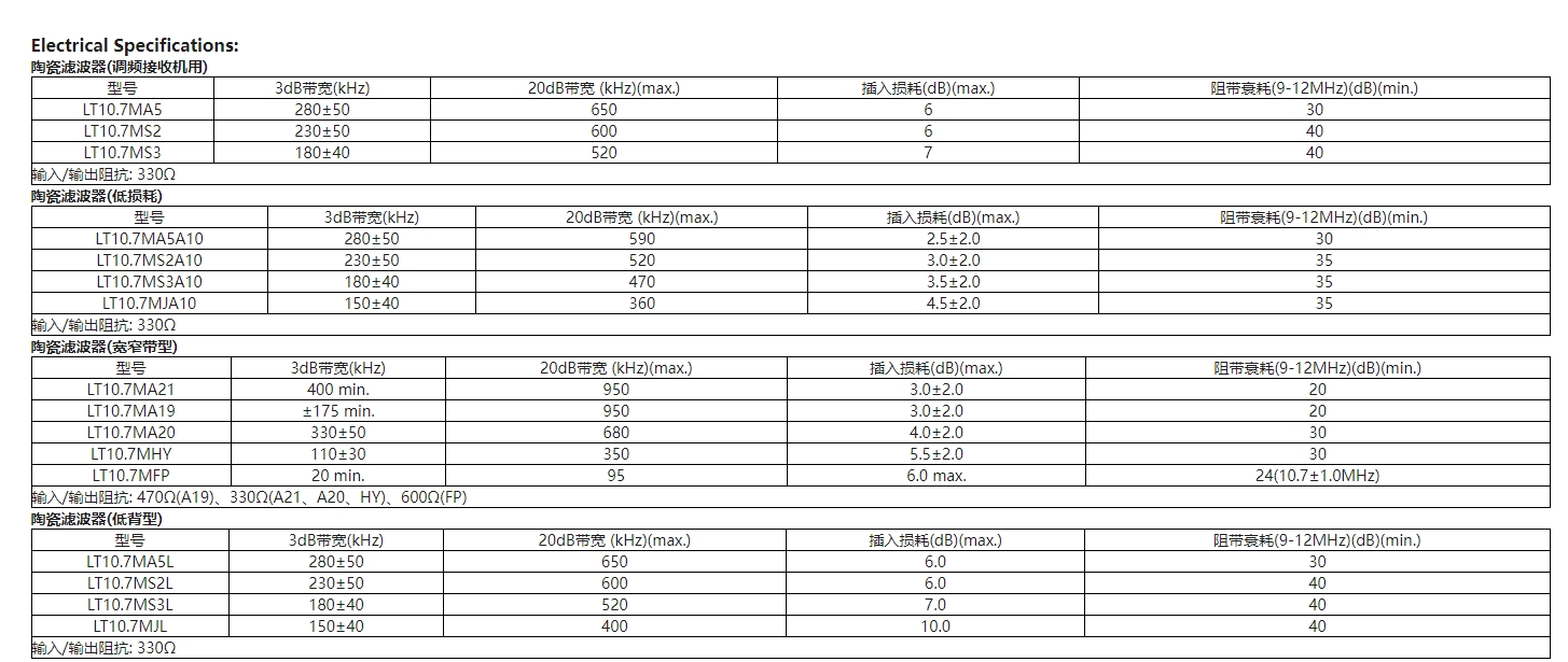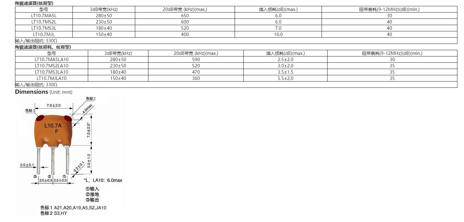 LT10.7陶瓷濾波器