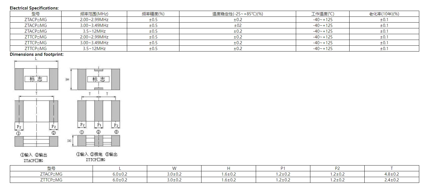 1. ZTACP/ZTTCP系列陶瓷晶振,高性價(jià)比