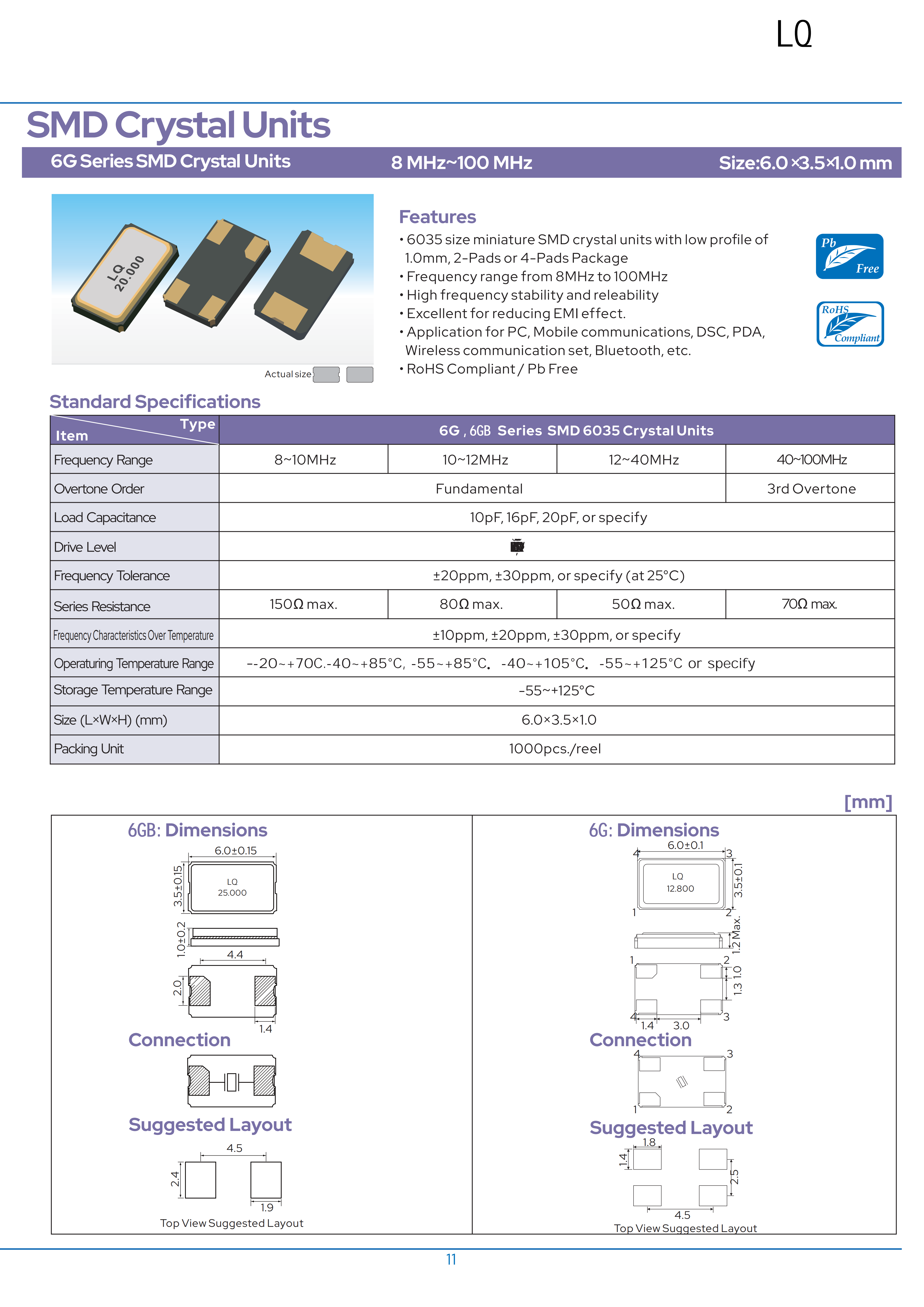 1、貼片金屬封裝,尺寸:6.0×3.5×1.0mm