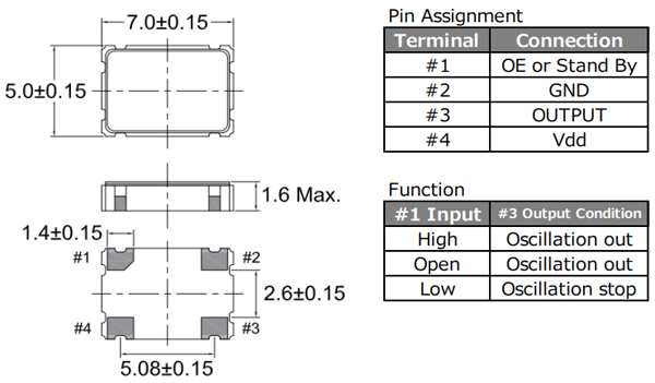External dimensions (mm) : L:7.0×W:5.0×H:1.6
