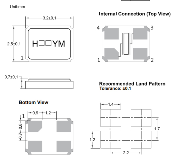 HSX321S晶振外形尺寸: