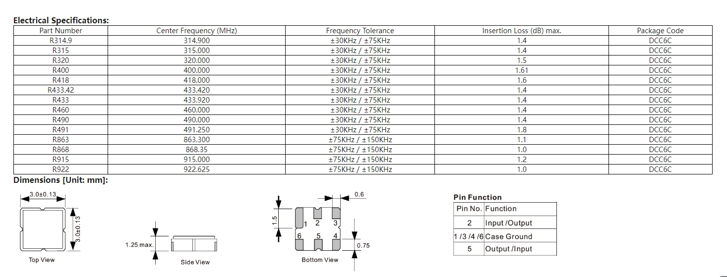 3. 封裝尺寸3.0×3.0×1.5mm