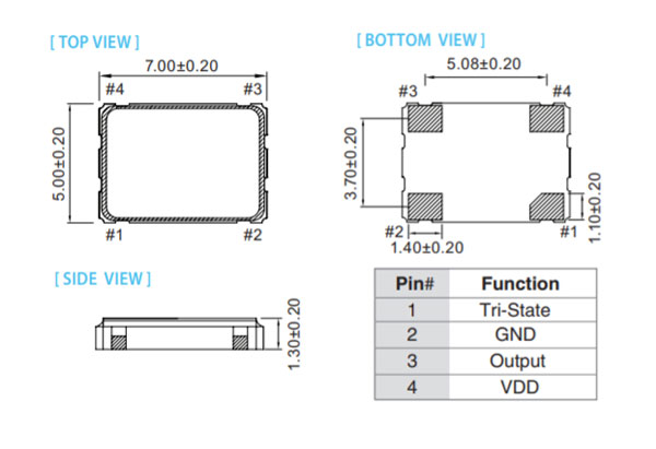 Typical 7.0×5.0×1.3mm ceramic SMD package.